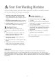 Your New Washing Machine Your new washing machine meets all modern requirements for effective treatment of laundry with low water, energy and detergent consumption. ● ● ● Automatic cooling of the wash water to 60¡C before draining, with the 90¡C programme. This reduces thermal shock to fabrics, helping to prevent creasing. The special wool programme with its new delicate wash system treats your woollens with extreme care.