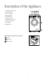 Description of the Appliance 1 Detergent dispenser drawer 2 Programme guide 3 Rinse hold button 4 Half load button 5 ON/OFF button 6 Mains-on light 7 Programme selector dial 8 Door opening handle 9 Drain pump 10 Adjustable feet Detergent dispenser drawer Prewash Main wash Fabric softener C0069 5