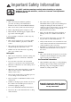 Important Safety Information You MUST read these warnings carefully before installing or using the appliance. If you need assistance, contact our Customer Care Department on 08705 950 950 Installation ● This cooker must be installed by qualified personnel, according to the manufacturer’s instructions and to the relevant British Standards. ● The ceramic hob is shockproof, but not unbreakable! Hard or pointed objects falling from a height can damage the hob.
