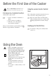Before the First Use of the Cooker Remove all packaging, both inside and outside the oven, before using the oven. Using the ceramic hob for the first time Before first use, the oven should be heated without food. During this time, an unpleasant odour may be emitted. This is quite normal. The cooking surface should be cleaned before use to remove any traces of the production process. ☞ ☞ 1. Set the oven function control knob to MAX. 2. Open a window for ventilation. 3.