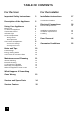 TABLE OF CONTENTS For the User For the Installer Important Safety Instructions 3 Description of the Appliance 5 Using Your Appliance 6 Before Use To Start The Appliance Thermostat Control Indicator Light Larder Compartment 6 6 6 7 8 8 8 Storage Guide Shelf Adjustment The Freezer Compartment 9 Frozen Food Storage Freezing Fresh Food 9 9 Hints and Tips 10 Food Storage Energy Saving Advice In the Event of a Power Failure 10 10 10 Maintenance and Cleaning 11 Internal Cleaning External Clean