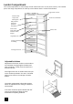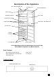 Description of the Appliance Non Heat Resistant Top Control Panel Dairy Compartment Interior Light Door Shelf Adjustable Shelves Salad Drawer Cover Salad Drawer Bottle Shelf with Bottle Grip Freezer Flap Freezer Baskets Level Adjusters Defrost Spout THE FURNISHINGS FROM THE SHRINK WRAP PACK SHOULD BE POSITIONED IN LINE WITH THE ABOVE DIAGRAM Pack Contents: Wire Shelf/Trim Assembly (3) Glass Salad Drawer Cover/Trim (1) Salad Drawer (2) Egg Tray (1) Ice Tray (1) Control Panel GREEN INDICATOR LIG