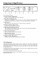 Using Your Fridge/Freezer ux*m(n The Control Panel 1} Freezer On. Main on Eight (green): Lights up continuously when the freezer is operating. 2} Temp. Rise. Warning light (versed: Indicates that the temperature in the freezer has risen. This can light up if the door has been left open for a period of time or a large amount of goad has been placed in the freezer. 3 Thermometer: “Phis indicates the average temperature at which the freezer is operating.