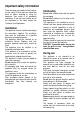 Important safety information These warnings are provided in the interests of your safety. Ensure that you understand them all before installing or using the appliance. Your safety is of paramount importance. If you are unsure about any of the information in this book contact the Customer Care Department. Installation The appliance must be installed according to the instructions supplied. The installation work must be undertaken by a qualified electrician or competent person.