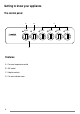 Getting to know your appliance The control panel B 6 5 6 5 3 4 6 6 4 5 5 3 2 2 3 4 100 1 2 200 3 15 0 6 0 1 D - Fan oven indicator neon 2 C - Hotplate controls 0 1 B - Grill control 2 A - Fan oven temperature control 1 Features 0 4 240 D 0 0 5 1 4 0 C 3 A