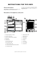 INS TR UCTIONS FOR THE USER General information This appliance is designed for the freezing and storage of frozen food in a domestic home. To ensure correct operation, the appliance should be located where the ambient temperature is between 16-32 °C. Description of the Appliance, main parts 1. Freezing tray (with 4 ice trays) 6. Defrost water outlet 2. Freezing compartment 7. Adjustable feet 3. Storing compartments (wire baskets) 8. Door gasket 4. Rating Plate 9. Thermostat 10. Air grid 5.
