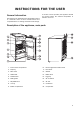 INS TR UCTIONS FOR THE USER General information This appliance is designed for the refrigeration of food in a domestic home. It has a two-star frozen food compartment for ice making and frozen food storage. To ensure correct operation, the appliance should be located where the ambient temperature is between 16-32 °C. Description of the appliance, main parts 1. Frozen food compartment 10. Interior light/Thermostat control 2. Drip tray 11. Door shelf 3. Wire shelf 12. Gasket 4. Glass shelf 13.