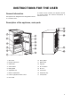 INS TR UCTIONS FOR THE USER General information This appliance is designed for the refrigeration of food in a domestic home. To ensure correct operation, the appliance should be located where the ambient temperature is between 16-32 °C. Description of the appliance, main parts 1. Wire shelf 10. Door gasket 2. Defrost water drain 11. Bottle shelf 3. Glass shelf 12. Egg tray 4. Salad drawer 13. Air circulation 5. Rating Plate 14. Air vent 6. Adjustable feet 15. Condenser 7.
