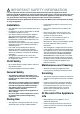 IMPORTANT SAFETY INFORMATION It is most important that this instruction book should be retained with the appliance for future reference. Should the appliance be sold or transferred to another owner, or should you move house and leave the appliance, always ensure that the book is left with the appliance in order that the new owner can get to know the functioning of the appliance and the relevant safety information. This information has been provided in the interest of safety.