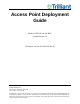 Access Point Deployment Guide Models AP-R9-E and AP-R9-F System Release 2.1 Document Version 010-0021-00 Rev D Trilliant Holdings, Inc. 401 Harrison Oaks Blvd., Suite 300 Cary, North Carolina 27513 NOTICE The contents of this document are proprietary and confidential and the property of Trilliant Holdings, Inc., its subsidiaries, affiliates, and/or licensors. This document is provided subject to the confidentiality obligations set forth in the agreement between your company and Trilliant.