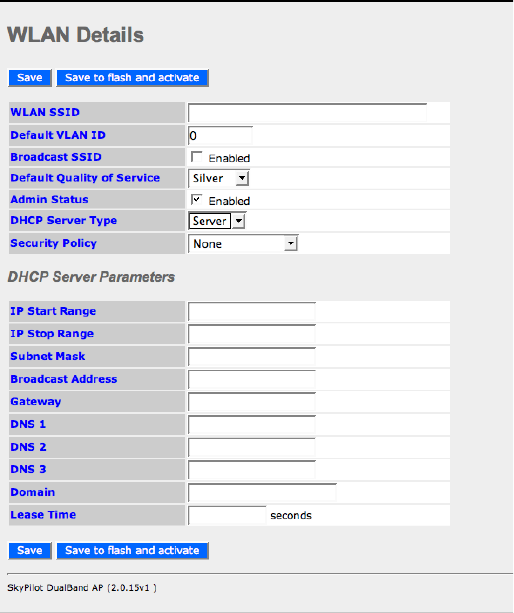 Figure 45. DHCP Server Parameters area of WLAN Details page