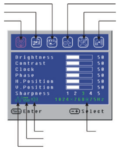 The OSD function allows the user to easily adjust the display to the desired requirements. The OSD menu includes a