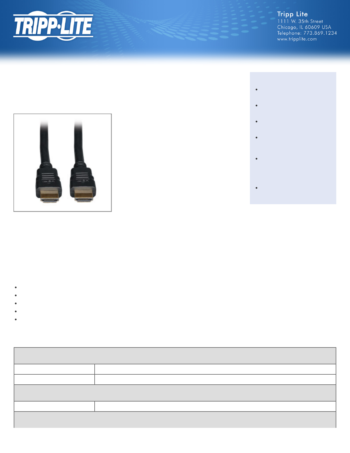 Tripp Lite P569 Series HDMI cables are the latest generation of Digital Video and Audio: HDMI High Speed with Ethernet. These cables offer the highest level