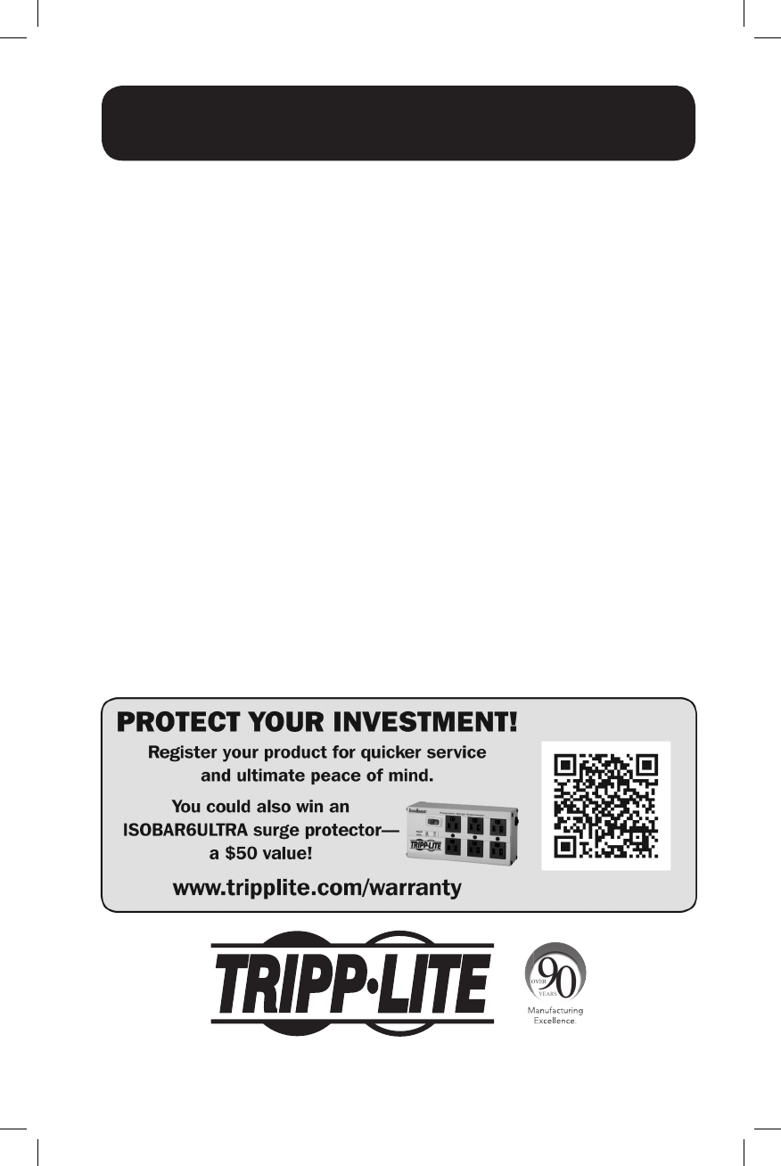 Service Your Tripp Lite product is covered by the warranty described in this manual. A variety of Extended Warranty and On-Site Service Programs are also available from Tripp Lite. For more information on service, visit www.tripplite.com/support. Before returning your product for service, follow these steps: 1. Review the installation and operation procedures in this manual to ensure that the service problem does not originate from a misinterpretation of the instructions. 2.