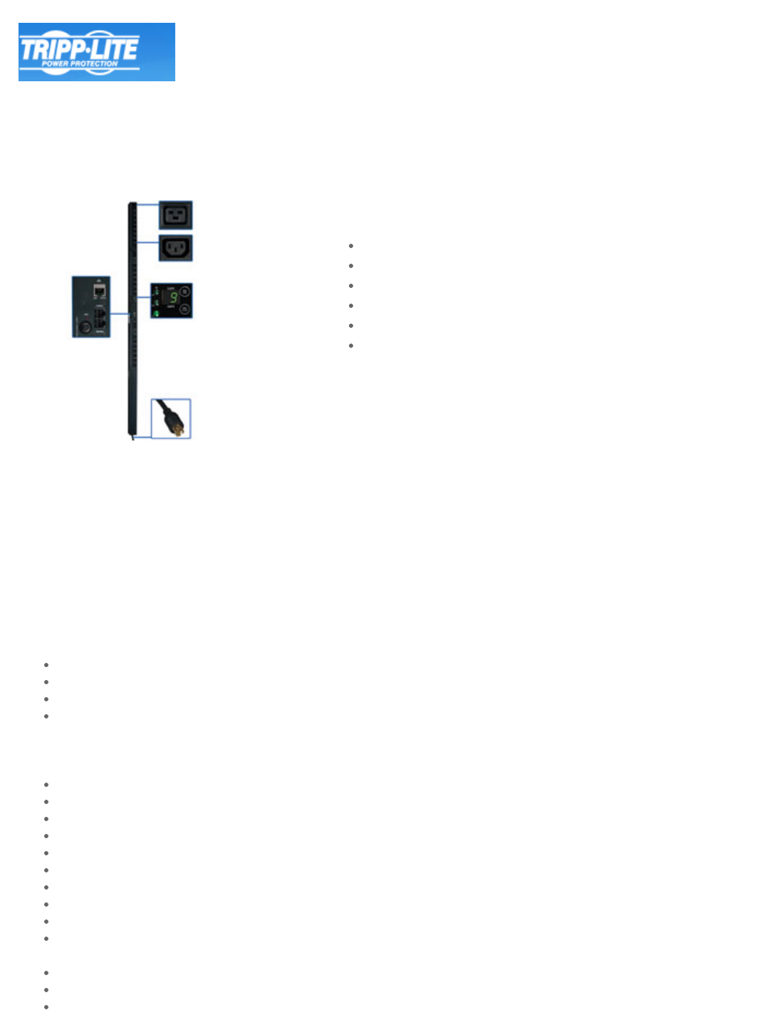 Tripp Lite 3 phase Switched PDU / Power Distribution Unit offers advanced network control and monitoring with the ability to turn on, turn off, recycle