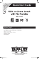 pr a c od ha reg Re Wa uc nc ist g r t— e t er is ra w o w on tra nty w w. in line ti o tri a pp FR tod n: lit E ay e. E fo co Tr r m ipp /w L ar it ra e nt y Quick Start Guide USB 2.0 Share Switch with File Transfer Model: U230-204-R Package Contents • U230-204-R USB 2.0 Share Switch with File Transfer • (x2) USB Device Cables, USB A Male to USB B Male • External Power Supply • CD with Owner’s Manual and Driver • Quick Start Guide • Device Stickers 1111 W. 35th Street, Chicago, Il 60609 USA www.