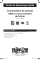 Guide de démarrage rapide Commutateur de partage USB 2.0 avec transfert de fichier Modèle : U230-204-R Contenu de l’emballage • • • • • • Commutateur de partage U230-204-R USB 2.0 avec transfert de fichier (x2) Câbles USB, fiche USB A Mâle à fiche USB B Mâle Bloc d’alimentation externe CD avec guide de l’utilisateur et pilote Guide de démarrage rapide Vignettes de l’appareil 1111 W. 35th Street, Chicago, Il 60609 USA www.tripplite.com/support 200908017.