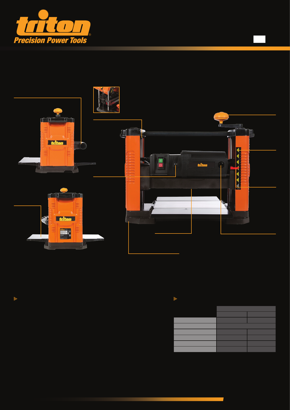 ⁄2" cutting width, Triton’s high performance planer / thicknesser delivers 17,500 cuts per minute for a high quality, consistently