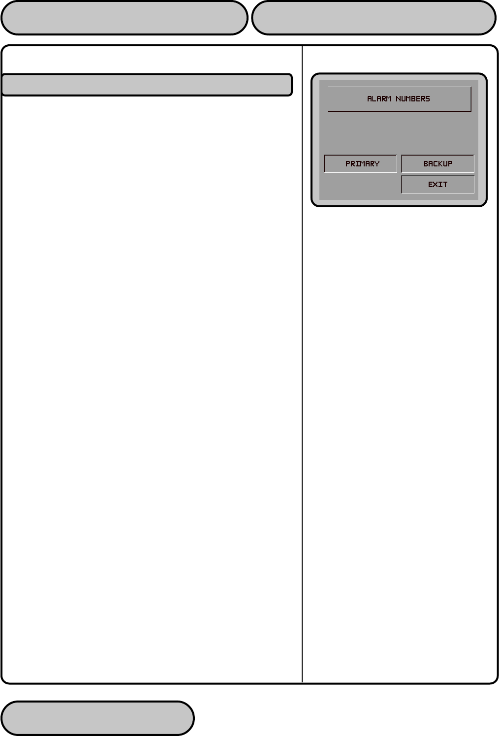 ness hours. Selecting the ALARM NUMBERS option brings up a