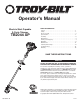 Operator’s Manual Electric Start Capable 2-Cycle Trimmer TB2044 XP TABLE OF CONTENTS Service . . . . . . . . . . . . . . . . . . . . . . . . . . . . . . . . . . . . . . . . . . . . . . .1 Safety . . . . . . . . . . . . . . . . . . . . . . . . . . . . . . . . . . . . . . . . . . . . . . .2 Know Your Unit . . . . . . . . . . . . . . . . . . . . . . . . . . . . . . . . . . . . . . . .5 Specifications . . . . . . . . . . . . . . . . . . . . . . . . . . . . . . . . . . . . . . . . .5 Assembly . . . . . . . . .