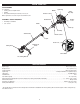 CONOZCA SU UNIDAD APLICACIONES Bujía de encendido Como recortadora: • Corta hierbas y malezas ligeras. • Bordeado • Recorte decorativo alrededor de árboles, vallas, etc. Con esta unidad se pueden usar otros accesorios opcionales: Silenciador Bloqueo del acelerador Interruptor encendido / apagado HERRAMIENTAS DE ENSAMBLADO REQUERIDAS: • • Destornillador Phillips n.
