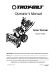 Operator’s Manual Snow Thrower Model 10030 IMPORTANT: Read safety rules and instructions carefully before operating equipment. Warning: This unit is equipped with an internal combustion engine and should not be used on or near any unimproved forestcovered, brush-covered or grass-covered land unless the engine’s exhaust system is equipped with a spark arrester meeting applicable local or state laws (if any). If a spark arrester is used, it should be maintained in effective working order by the operator.