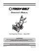 1 To The Owner Thank You Thank you for purchasing a Snow Thrower manufactured by Troy-Bilt LLC. It was carefully engineered to provide excellent performance when properly operated and maintained. Please read this entire manual prior to operating the equipment. It instructs you how to safely and easily set up, operate and maintain your machine. Please be sure that you, and any other persons who will operate the machine, carefully follow the recommended safety practices at all times.