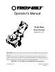 Operator’s Manual Single Stage Snow Thrower Models 521 & 721 IMPORTANT: Read safety rules and instructions carefully before operating equipment. Warning: This unit is equipped with an internal combustion engine and should not be used on or near any unimproved forestcovered, brush-covered or grass-covered land unless the engine’s exhaust system is equipped with a spark arrester meeting applicable local or state laws (if any).