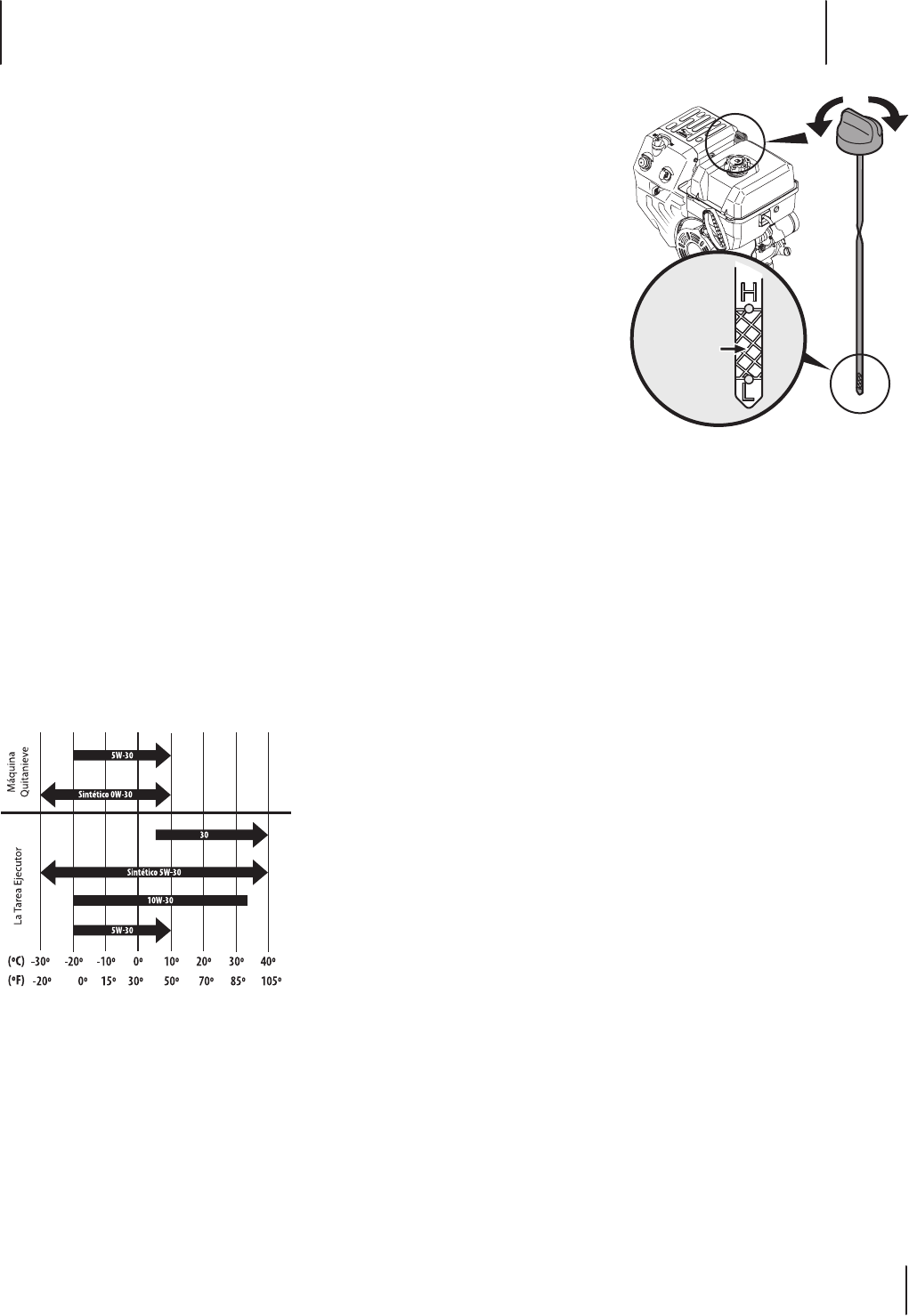 • Mantenga el nivel de aceite entre las marcas
