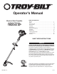 Operator’s Manual Electric Start Capable 2-Cycle Trimmer TB2044 XP TABLE OF CONTENTS Service . . . . . . . . . . . . . . . . . . . . . . . . . . . . . . . . . . . . . . . . . . . . . . .1 Safety . . . . . . . . . . . . . . . . . . . . . . . . . . . . . . . . . . . . . . . . . . . . . . .2 Know Your Unit . . . . . . . . . . . . . . . . . . . . . . . . . . . . . . . . . . . . . . . .5 Specifications . . . . . . . . . . . . . . . . . . . . . . . . . . . . . . . . . . . . . . . . .5 Assembly . . . . . . . . .