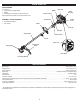 CONOZCA SU UNIDAD APLICACIONES Bujía de encendido Como recortadora: • Corta hierbas y malezas ligeras. • Bordeado • Recorte decorativo alrededor de árboles, vallas, etc. Con esta unidad se pueden usar otros accesorios opcionales: Silenciador Bloqueo del acelerador Interruptor encendido / apagado HERRAMIENTAS DE ENSAMBLADO REQUERIDAS: • • Destornillador Phillips n.