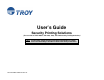 User’s Guide Security Printing Solutions (For use with all TROY MICR / IRD 2300, 4200, and 4300 Security Printing Solutions) NOTE: For best results, view this document using Adobe Acrobat Reader 5.0 or higher. Click on the main headings in the table of contents to link directly to that section. Document #50-70376-001 Rev.