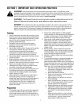 j. Toreduceafirehazard,keepmachinefree ofgrass,leaves,orotherdebrisbuild-up. Cleanupoilorfuelspillageandremoveany fuelsoakeddebris. k. Allowmachinetocoolatleast5 minutes beforestoring. Operation 1. 2. 3. 4. 5. 6. 7. 8. 9. Do not put hands and feet near rotating parts or in the feeding chambers and discharge opening. Contact with the rotating impeller can amputate fingers, hands, and feet.