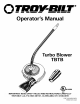 O ® I I__ Operator's Manual Turbo Blower TBTB C_US LISTED A241 IMPORTANT: TROY-BILT READ SAFETY RULES AND INSTRUCTIONS CAREFULLY LLC, P.O.