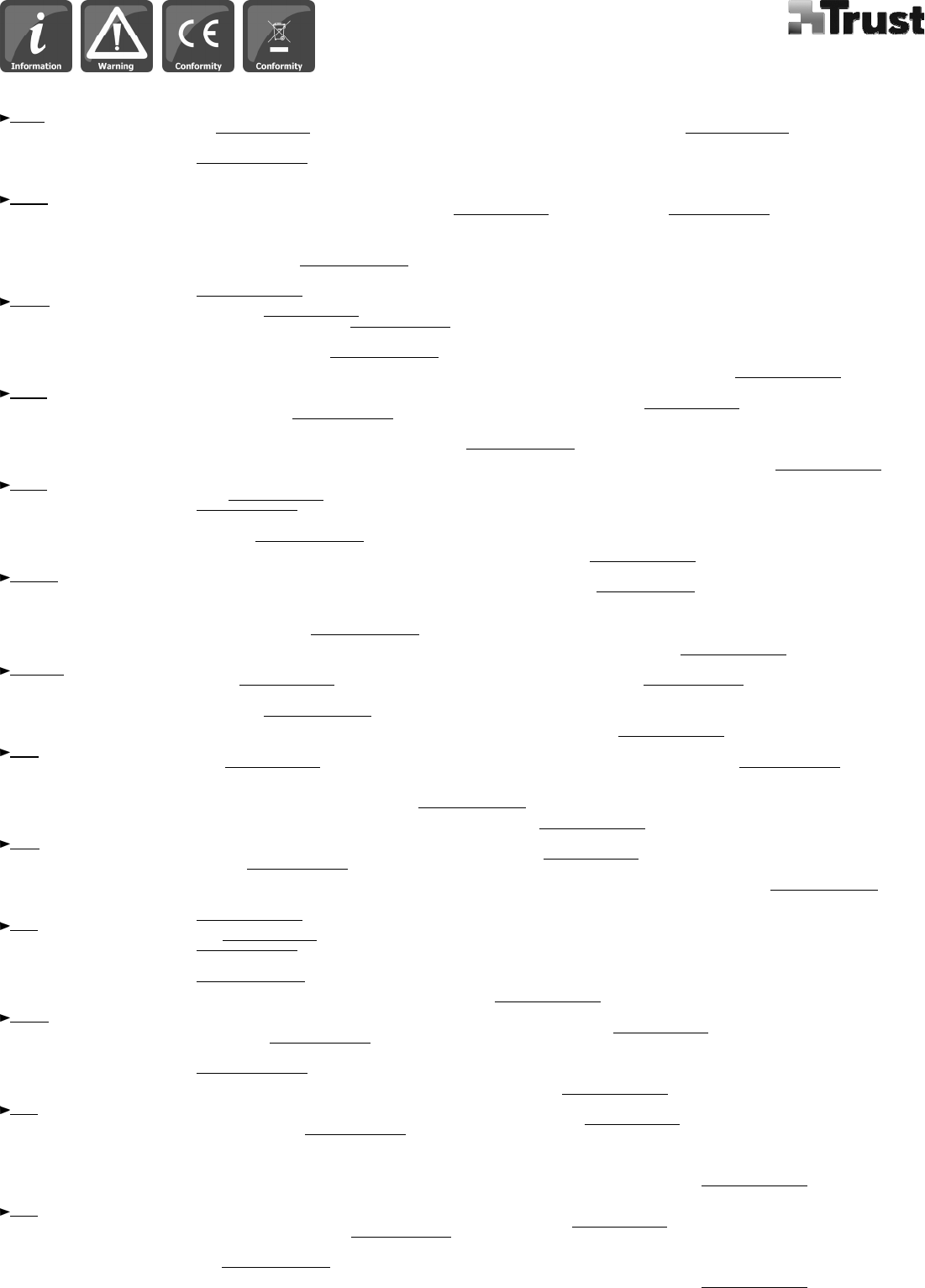 CE Tämä laite täyttää asianomaisten eurooppalaisten direktiivien vaatimukset. Vaatimustenmukaisuusvakuutus on luettavissa osoitteessa www.trust.com/16757/ce