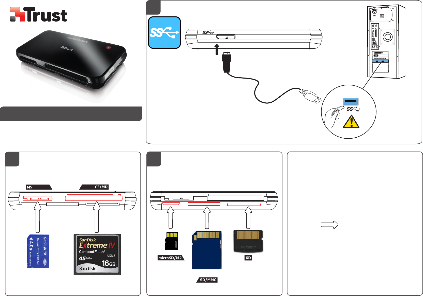 trust.com/16431/faq USB 3.0 Quick Installation Guide SUPERSPEED USB 3.0 ALL-IN-1 CARDREADER 2 17596 43 FAQ trust.com/17596/faq 20110110CK1 © Trust International B.V.