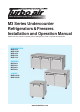 Turbo Air Speeds up the Pace of Innovation M3 Series Undercounter Refrigerators & Freezers Installation and Operation Manual Please read this manual completely before attempting to install or operate this equipment. REFRIGERATORS MUR-28-N MUR-36-N6 MUR-48-N MUR-60-N MUR-72-N FREEZERS MUF-28-N MUF-36-N MUF-48-N MUF-60-N LOW BOY MUR-28L-N6 MUR-36L-N6 www.turboairinc.