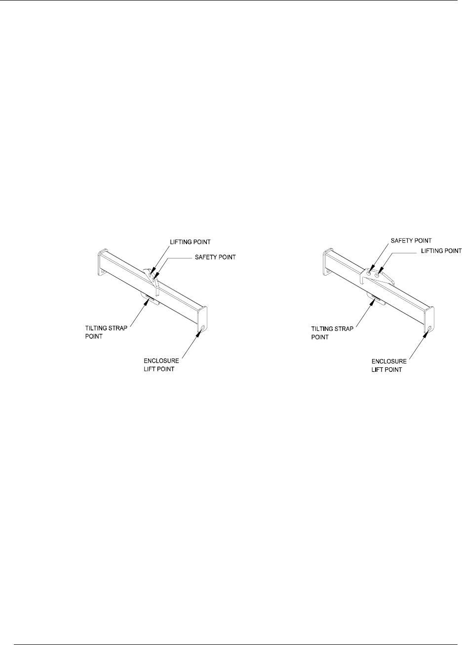 enclosure suspension tabs and tilting strap pick-up point, designed to fly a single box or