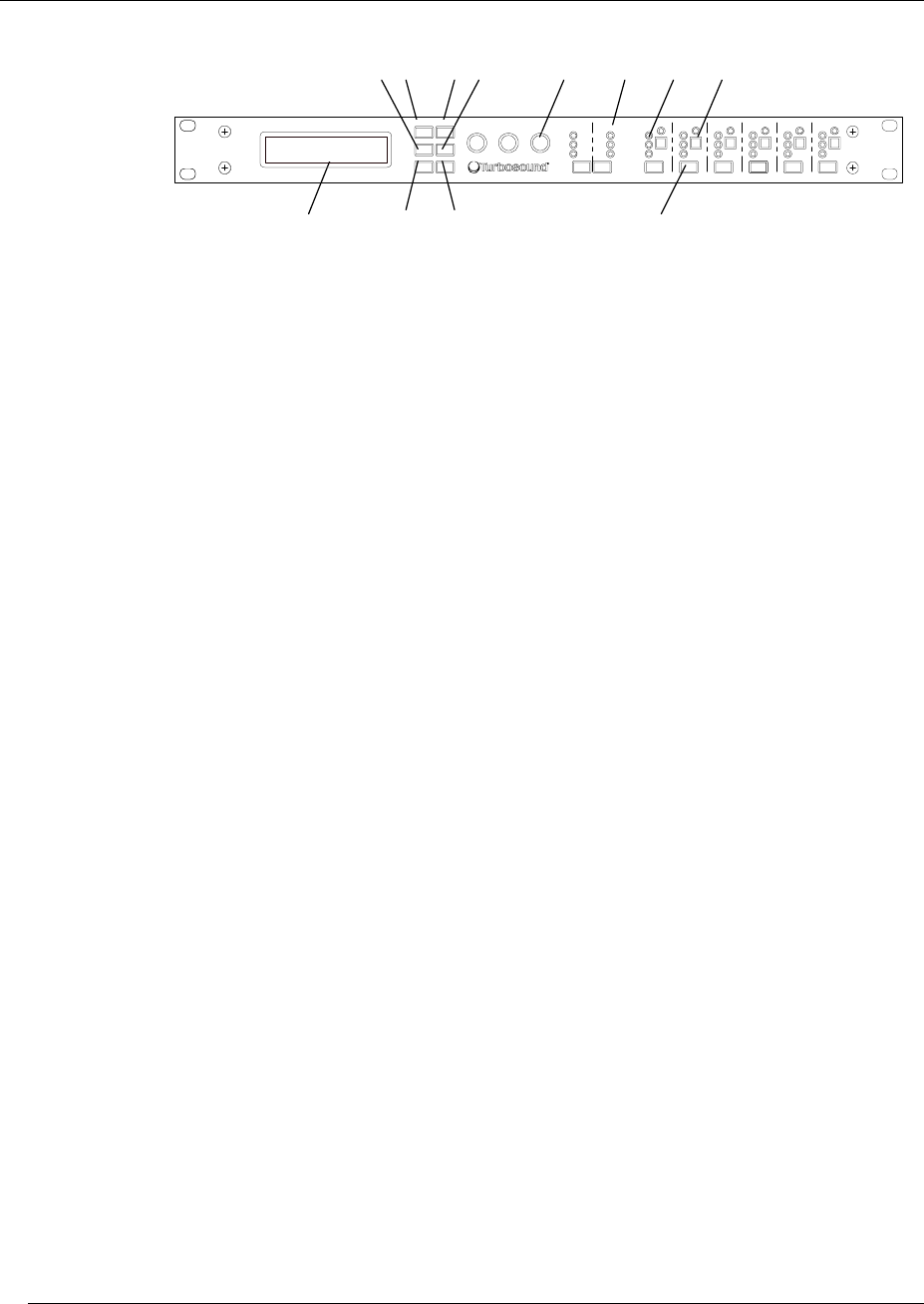 11. Output Meters - Displays headroom before limiting occurs. The bottom green LED is