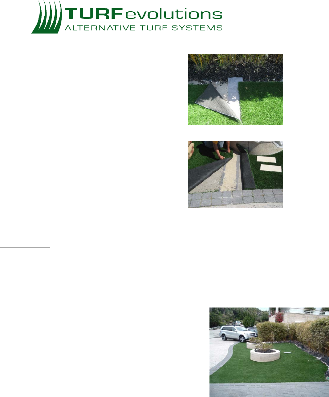 of turf will meet and spread glue 3-4” on both sizes of marked