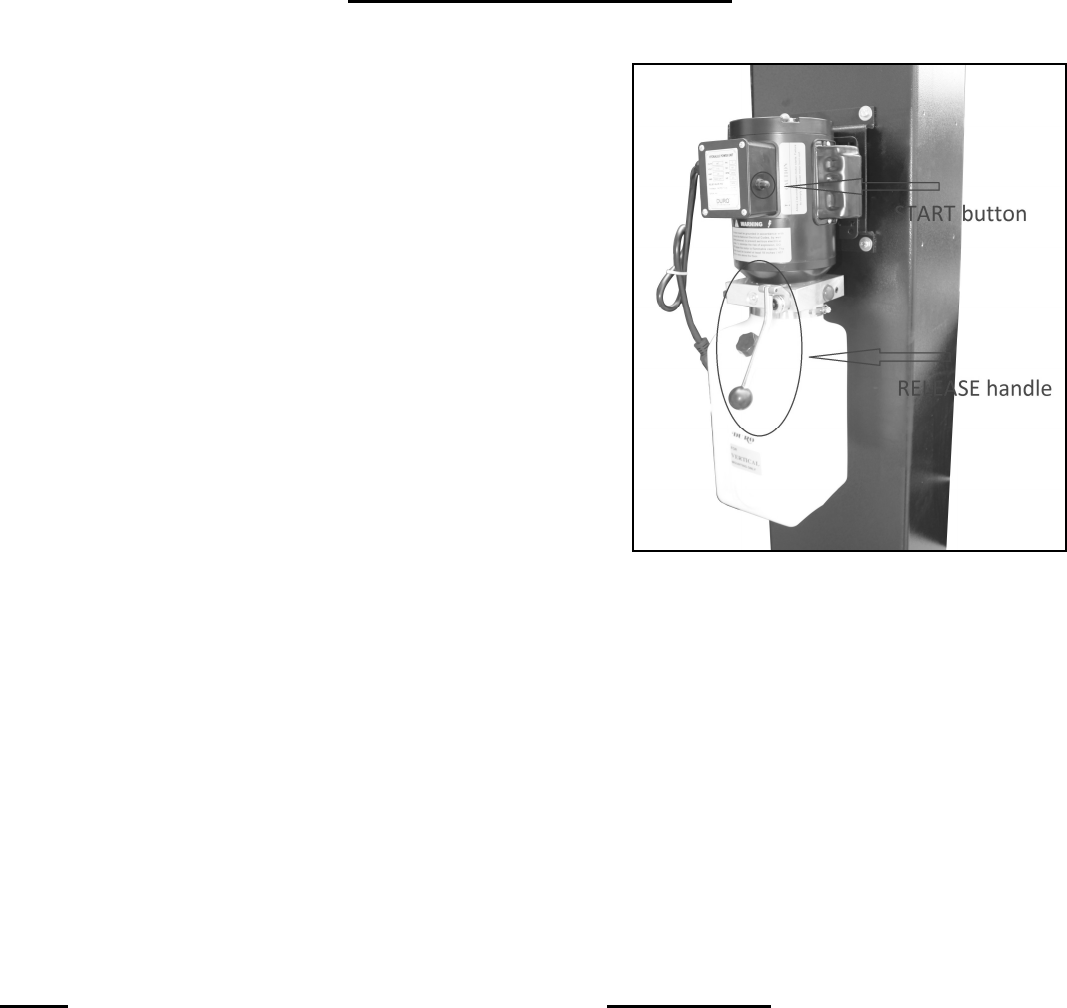 the RELEASE handle. The lift will lower down by gravity. No extra power is required to lower the lift.