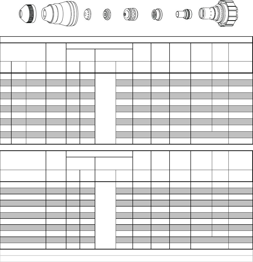 type indicates maximum piercing parameters.