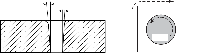 side of a cut being more square than the other. Viewed along the direction of travel, the right side of the cut is more