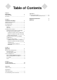 Table of Contents Chapter 1 Introduction 1 Product Description 1 Precautions ................................................................. 1 Chapter 2 Installation and Setup 2 Unpacking Your Touchmonitor ...................................... 2 Interface Connection ................................................... 3 Power Requirements ................................................... 3 Product Overview ....................................................... 4 Main Unit .......................