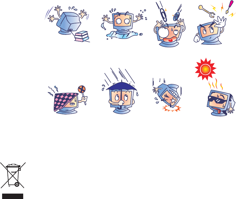 • Avoid getting liquids inside your touchmonitor. If liquid does get inside, have a
