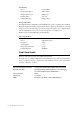 Touchmonitor Specifications Model LCD Display Display Size Pixel Pitch Display Mode Native Max. Resolution Contrast Ratio Brightness Response Time Display Color Viewing Angle Input Signal Video Sync Signal Connector Front Control OSD Plug & Play Touch Panel (optional) Power Adapter Operating Conditions Temp Humidity Altitude Dimensions (HxWxD) Weight (Net) Certifications C-44 Elo Touchmonitor User Guide ET1229L 12.1” TFT Active Matrix Panel 246(H) x 184.5(V) mm 0.3075(H) x 0.