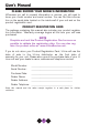 User’s Manual PLEASE RECORD YOUR MODEL’S INFORMATION Whenever you call to request information or service, you will need to know your model number and serial number. You can find this information on the serial plate located on the inside wall of your unit and on the product registration card. PRODUCT REGISTRATION CARD The package containing this manual also includes your product registration information. Warranty coverage begins at the time your unit was purchased.
