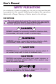 User’s Manual SAFETY PRECAUTIONS Do not attempt to install or operate your unit until you have read the safety precautions in this manual. Safety items throughout this manual are labeled with a Danger, Warning or Caution based on the risk type. DEFINITIONS ! This is the safety alert symbol. It is used to alert you to potential personal injury hazards. Obey all safety messages that follow this symbol to avoid possible injury or death.
