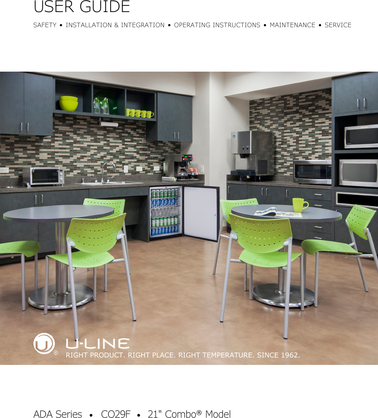 USER GUIDE SAFETY • INSTALLATION & INTEGRATION • OPERATING INSTRUCTIONS • MAINTENANCE • SERVICE RIGHT PRODUCT. RIGHT PLACE. RIGHT TEMPERATURE. SINCE 1962.