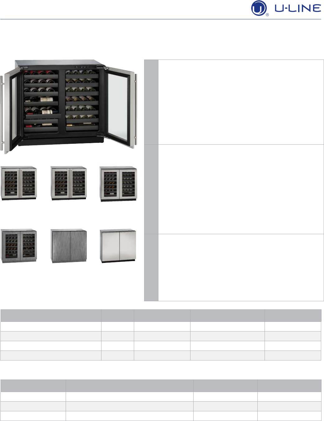 • Wine racks accommodate a variety of bottle shapes and sizes;